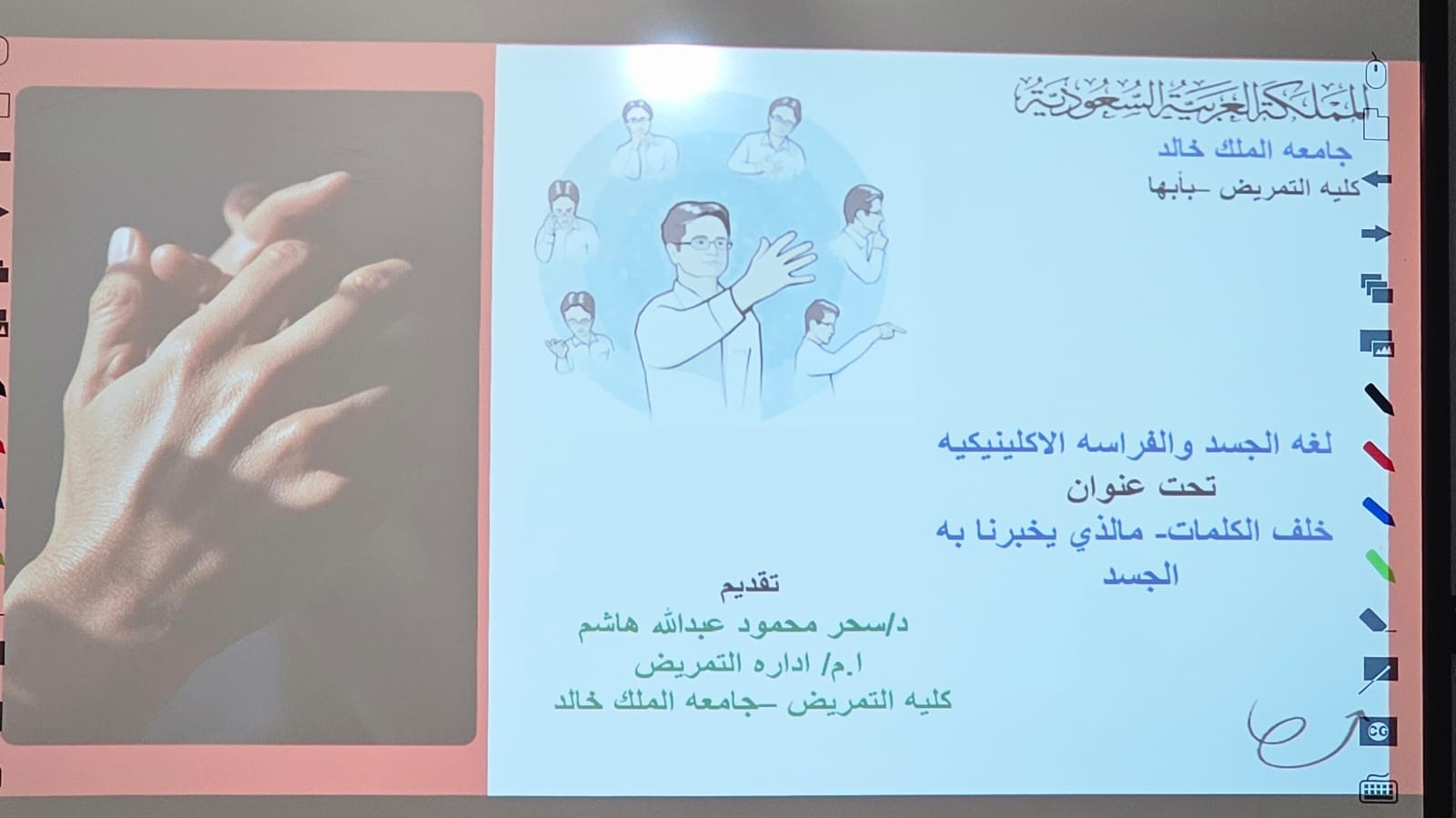 وبإشراف د. مني ال شريم وكيلة الكلية للشئون التعليمية نظمت وحدة الرعاية والاستشارات الطلابية بالتعاون مع نادي التمريض والاقسام العلمية بالكلية فعالية متميزة بعنوان مهارات التواصل الغير لفظي في التمريض الإكلينيكي تحت شعار "خلف الكلمات... ماذا يخبرنا به الجسد" والتي ركزت على "لغة الجسد والفراسة الإكلينيكية". هدفت الفعالية إلى تسليط الضوء على الأبعاد العميقة للتواصل غير اللفظي وتأثيرها المباشر على جودة الرعاية التمريضية وبناء الثقة مع المرضى.