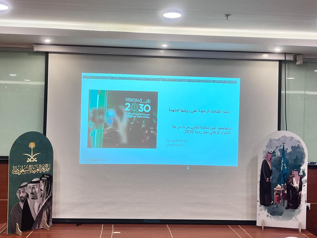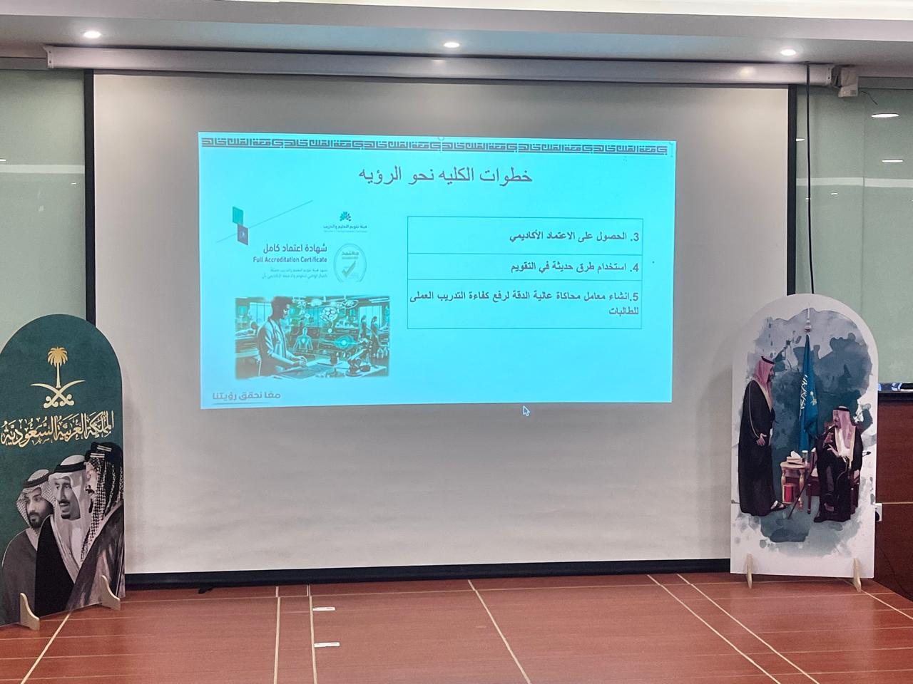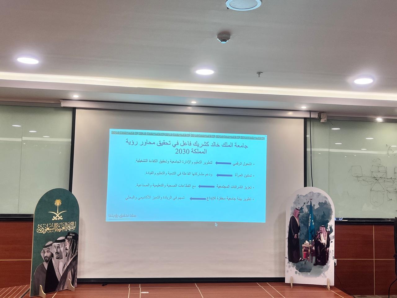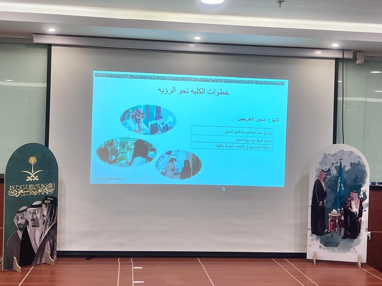 Under the patronage of the Dean of the College, Dr. Sahar Rafdan Al-Shahrani, and the esteemed Vice Dean, Dr. Reem Humaidi, a meeting was held for the faculty members and administrative staff of the college to raise awareness about the Kingdom of Saudi Arabia's Vision 2030.