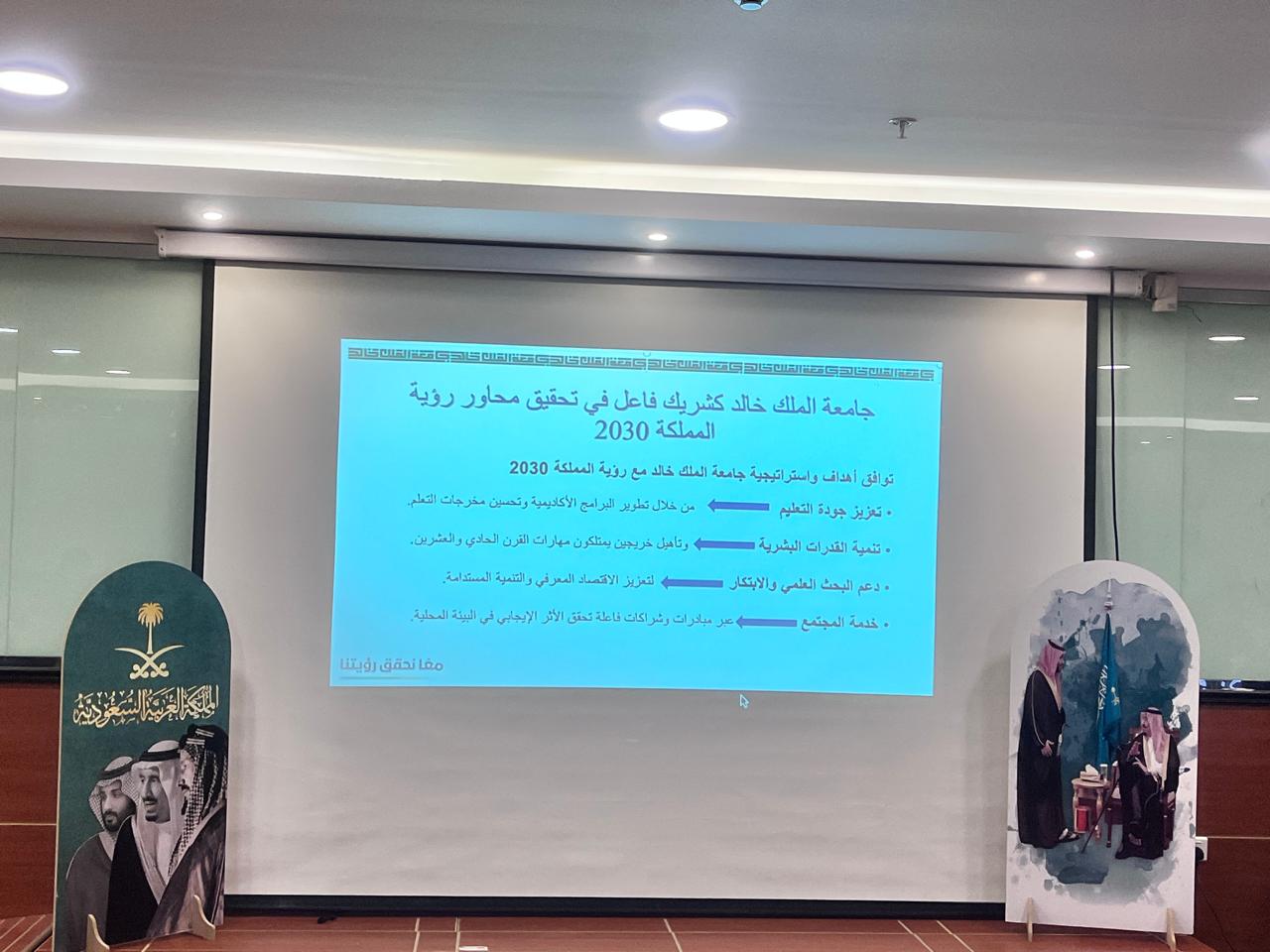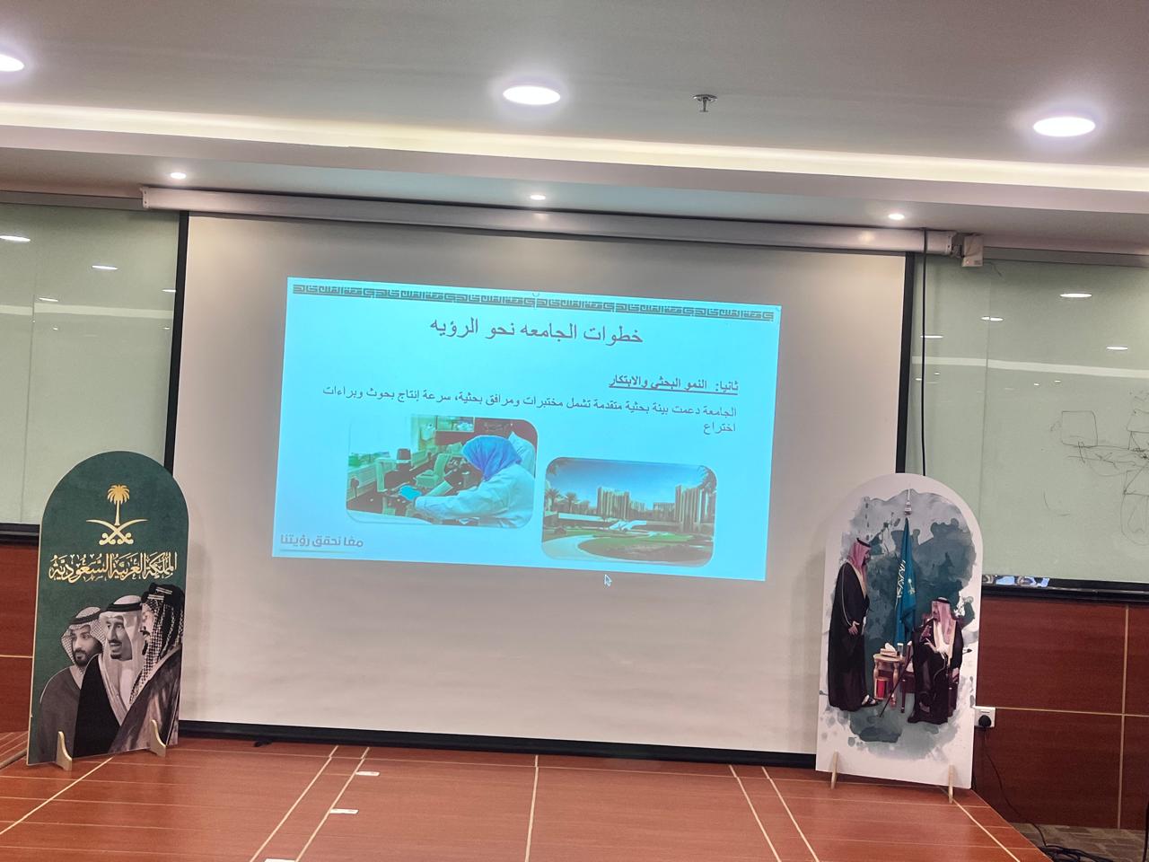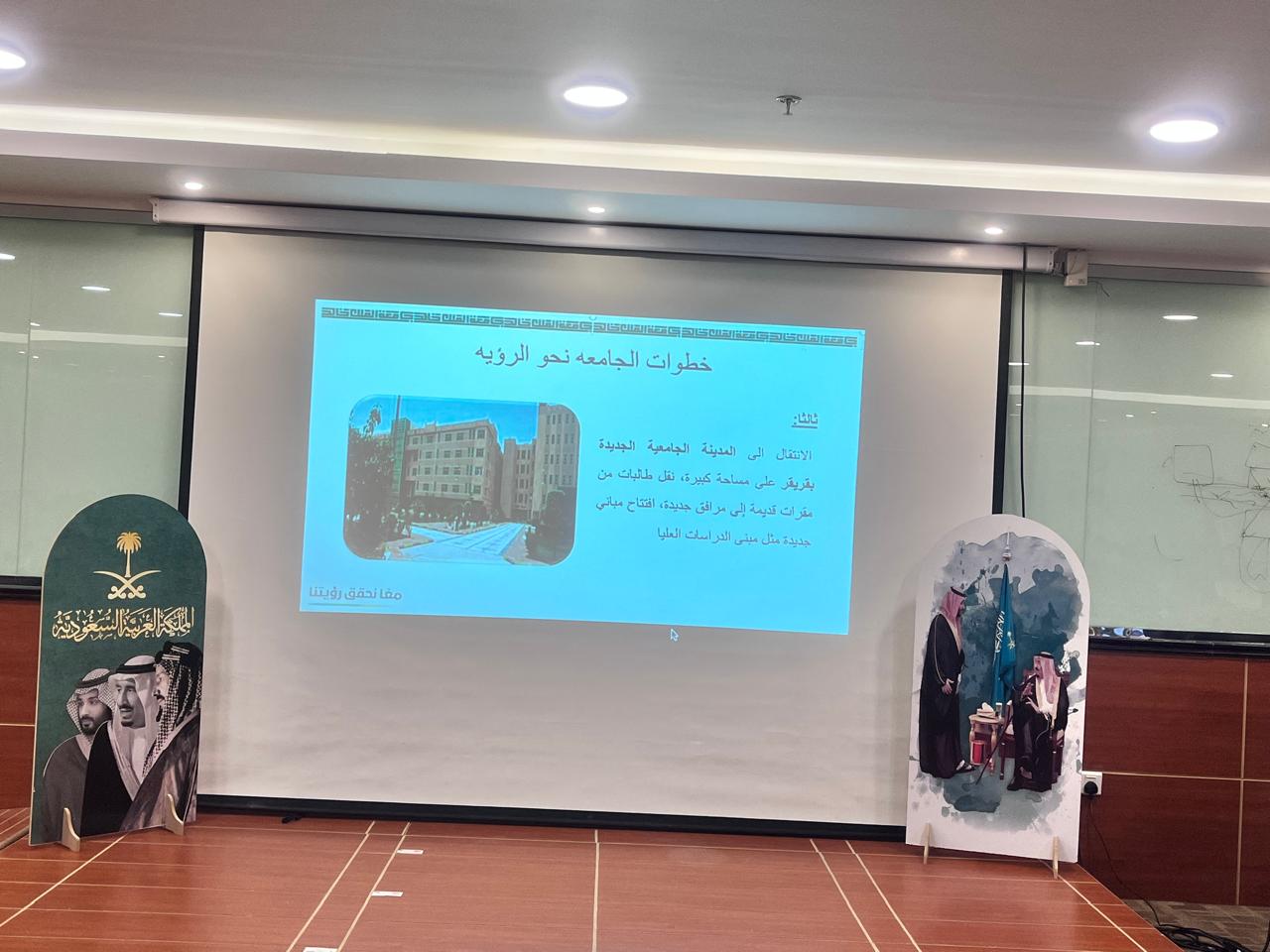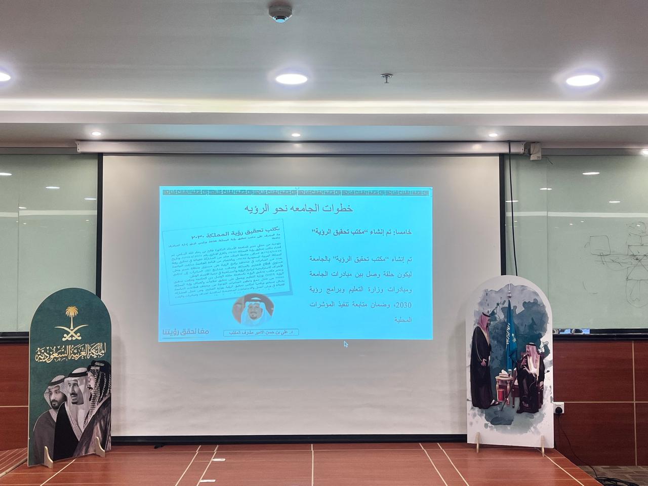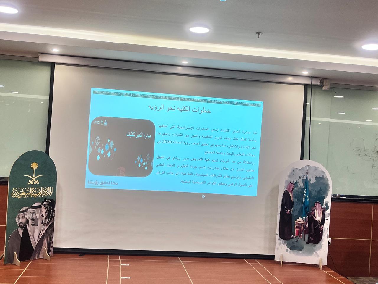 Under the patronage of the Dean of the College, Dr. Sahar Rafdan Al-Shahrani, and the esteemed Vice Dean, Dr. Reem Humaidi, a meeting was held for the faculty members and administrative staff of the college to raise awareness about the Kingdom of Saudi Arabia's Vision 2030.