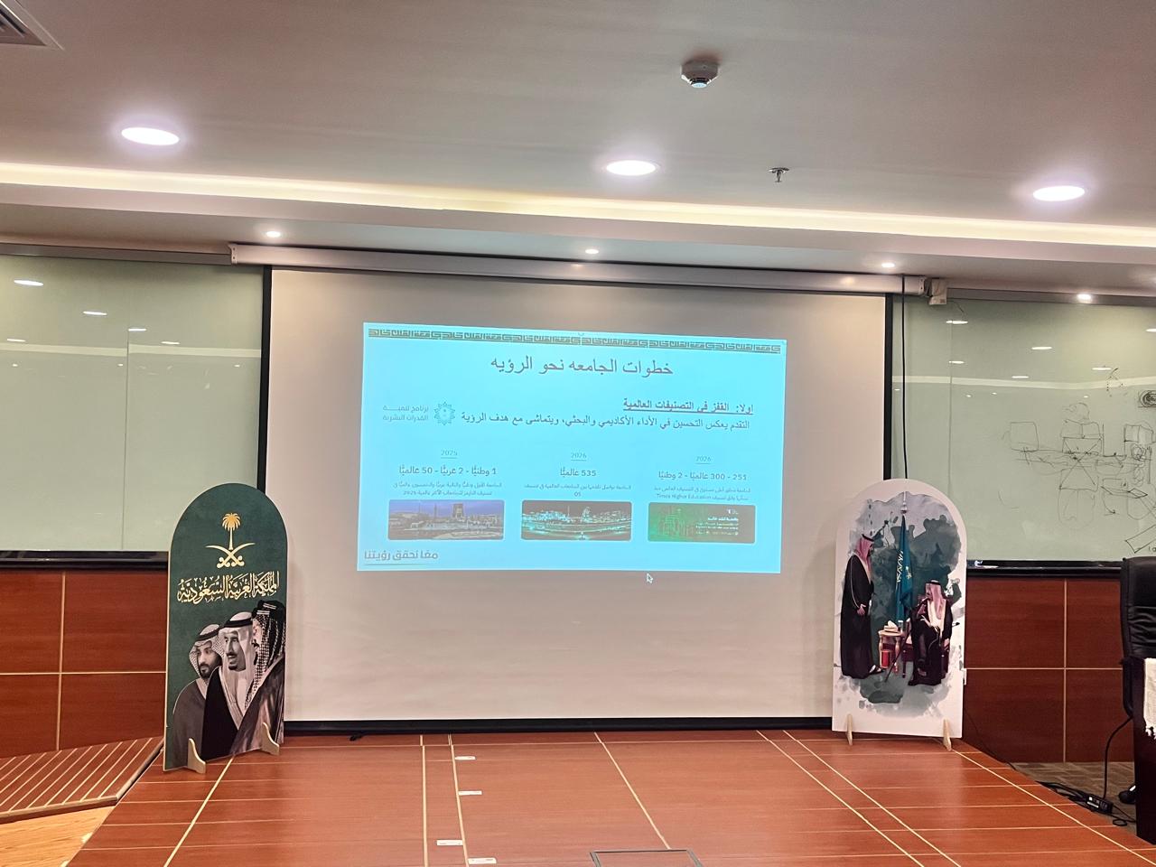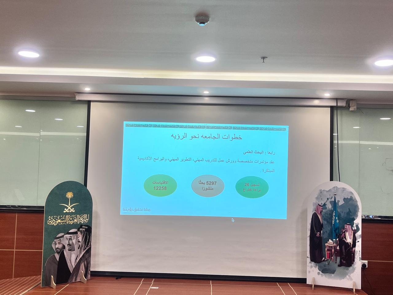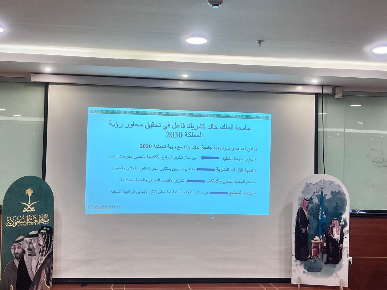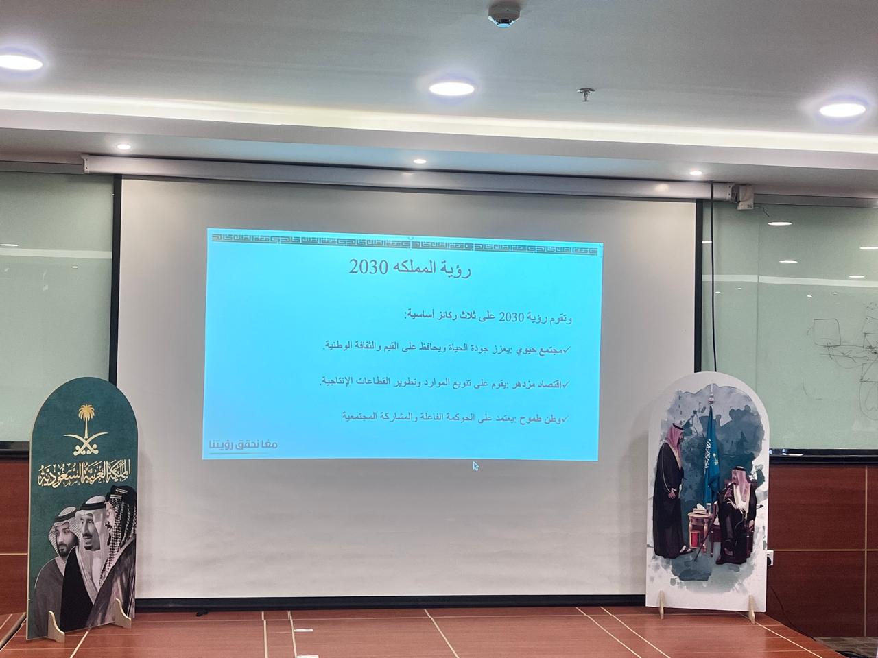 Under the patronage of the Dean of the College, Dr. Sahar Rafdan Al-Shahrani, and the esteemed Vice Dean, Dr. Reem Humaidi, a meeting was held for the faculty members and administrative staff of the college to raise awareness about the Kingdom of Saudi Arabia's Vision 2030.