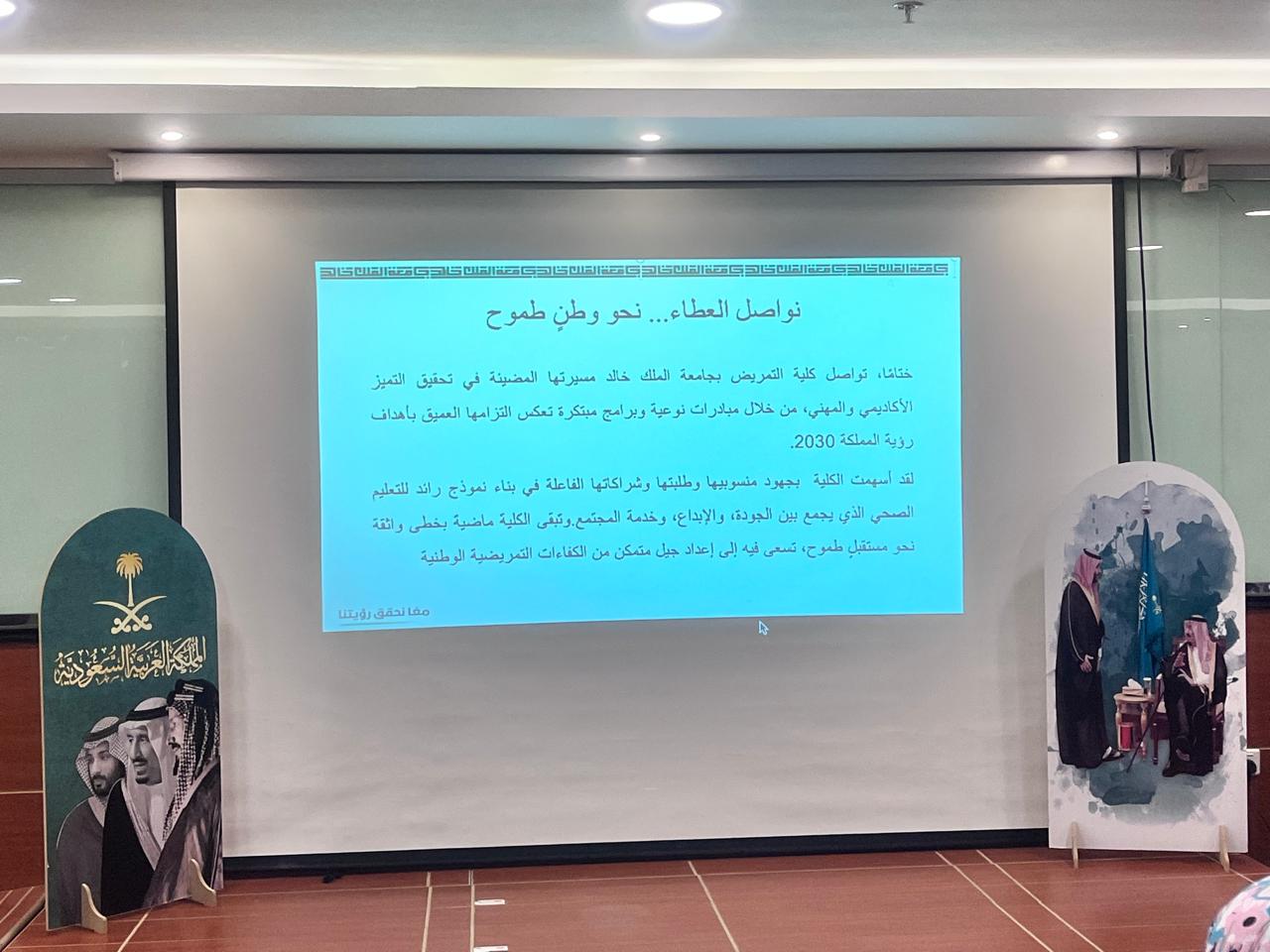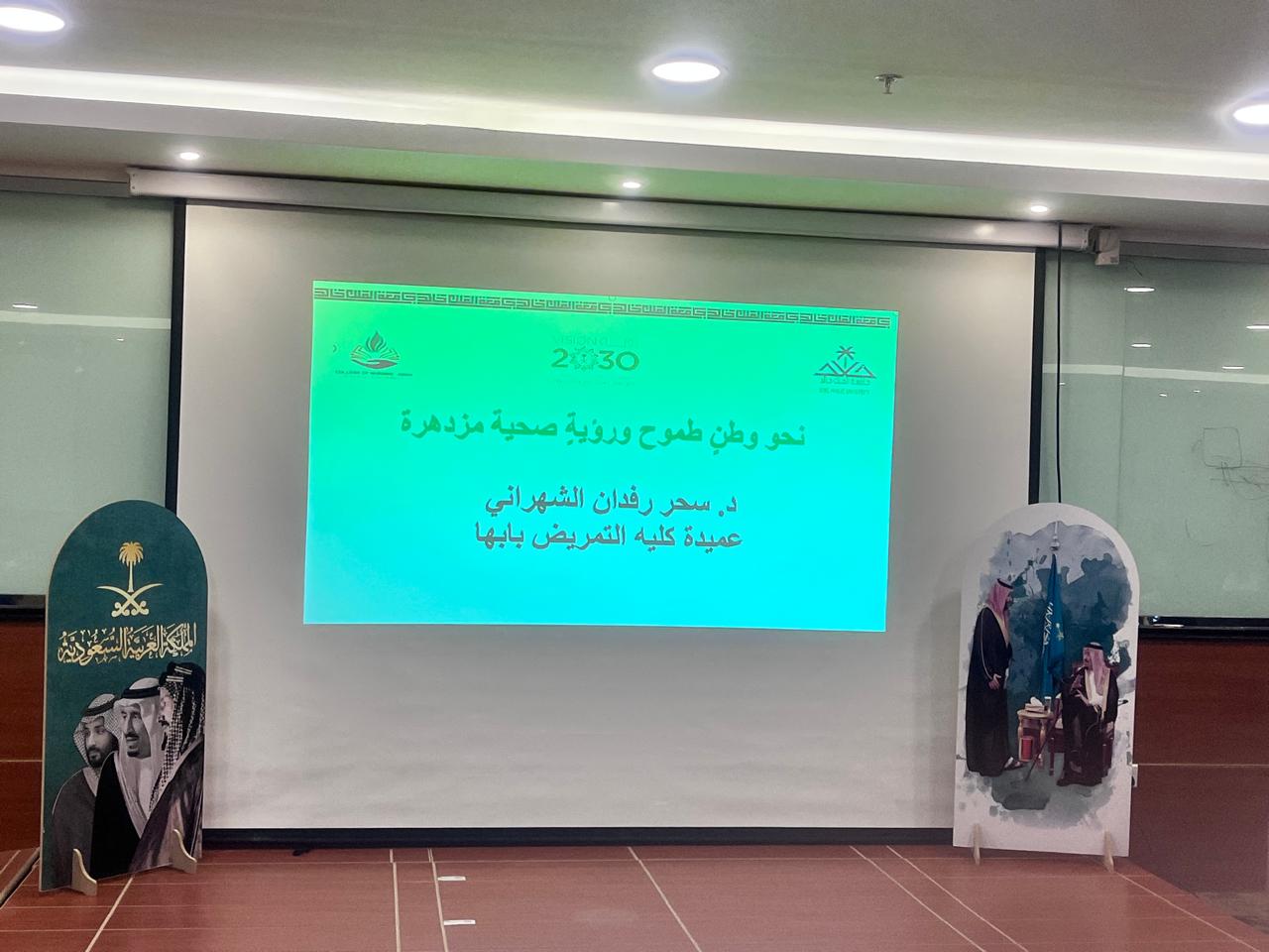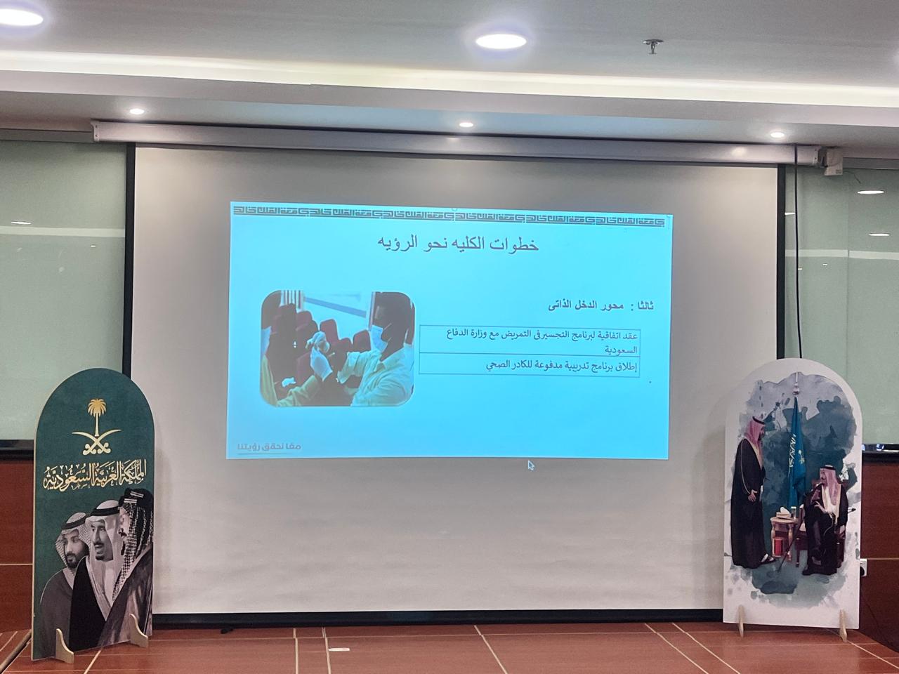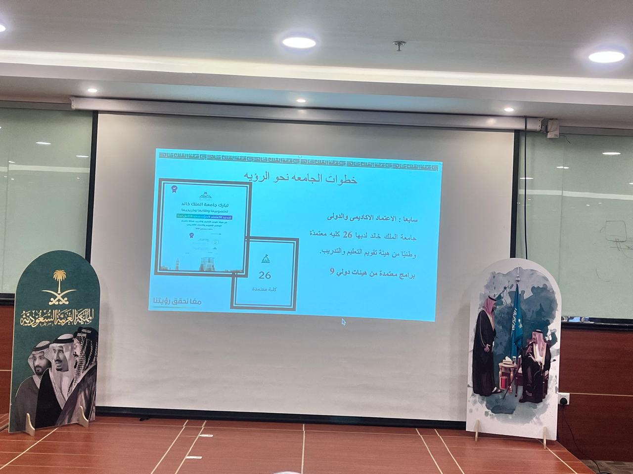 Under the patronage of the Dean of the College, Dr. Sahar Rafdan Al-Shahrani, and the esteemed Vice Dean, Dr. Reem Humaidi, a meeting was held for the faculty members and administrative staff of the college to raise awareness about the Kingdom of Saudi Arabia's Vision 2030.