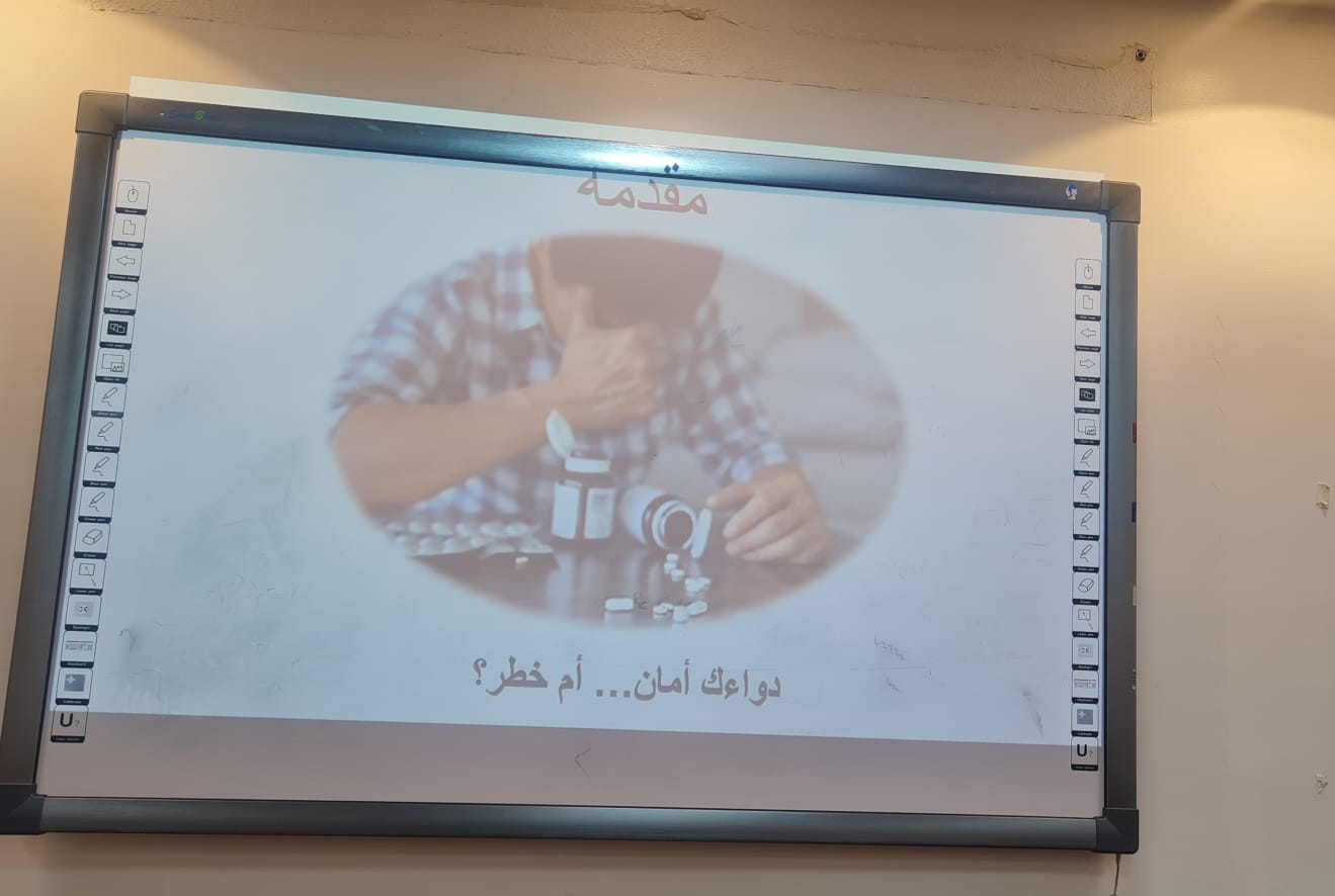 Following her, Dr. Dawlat Ahmed gave a lecture in which she discussed types of medications that can be taken without a prescription and their potential risks to both individual and public health. She also provided a set of educational guidelines aimed at preventing the misuse of medications and antibiotics.
